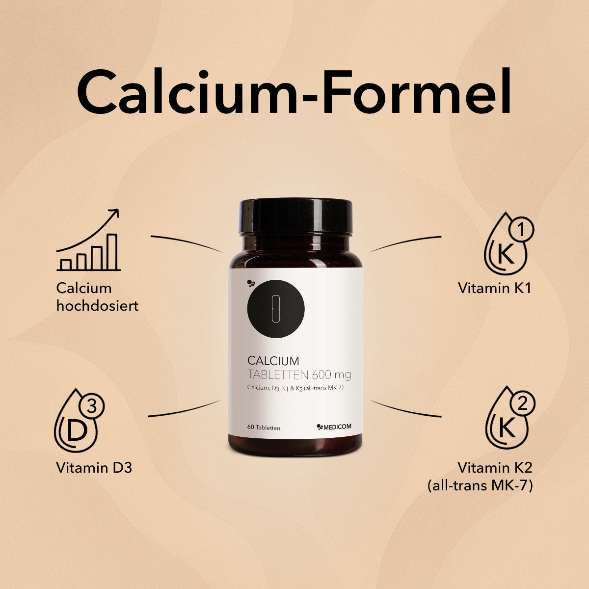 Menachinon, Füllstoff: Calciumcarbonat, Cholecalciferol, Trennmittel: Tricalciumphosphat, Magnesiumsalze der Speisefettsäuren